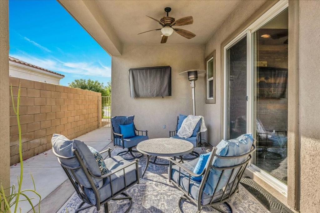 Price Reduced! Welcome to your new home in the sought-after Estacio community in South Indio. This spacious residence features an open layout that seamlessly connects the living spaces, creating an inviting atmosphere perfect for both relaxation and entertaining. Key features include a large primary suite with a luxurious ensuite bath and walk-in closet, two additional bedrooms plus a den that can easily be converted into a fourth bedroom, and a 3-car garage providing ample storage and parking. The cook's kitchen boasts a breakfast bar, built-in desk, and a spacious walk-in pantry. Multiple outdoor spaces enhance the living experience, including a living area off the kitchen pre-wired for outdoor entertainment. The well-landscaped backyard includes a charming fountain and peek-a-boo views of Mt. San Jacinto. Residents of the Estacio community enjoy low HOA dues, which include controlled access and a resort-style pool. The community is located in quiet South Indio, away from major thoroughfares, yet conveniently close to shopping, dining, and entertainment options, the Festival Grounds, Old Town La Quinta, Citrus/Canopy Plaza, IW Tennis Gardens, hiking trails, golf courses, and more. This home qualifies for a $5,000 Chase home buyer grant--inquire with the listing agent for more details. Don't miss the opportunity to make this stunning, well-maintained home yours!